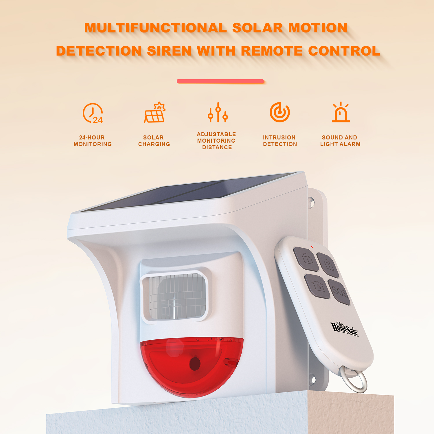 • RF remote control has ARM/Disarm buttons & SOS button for