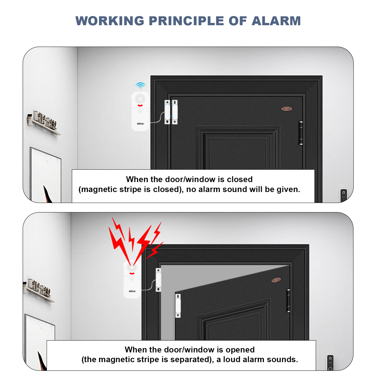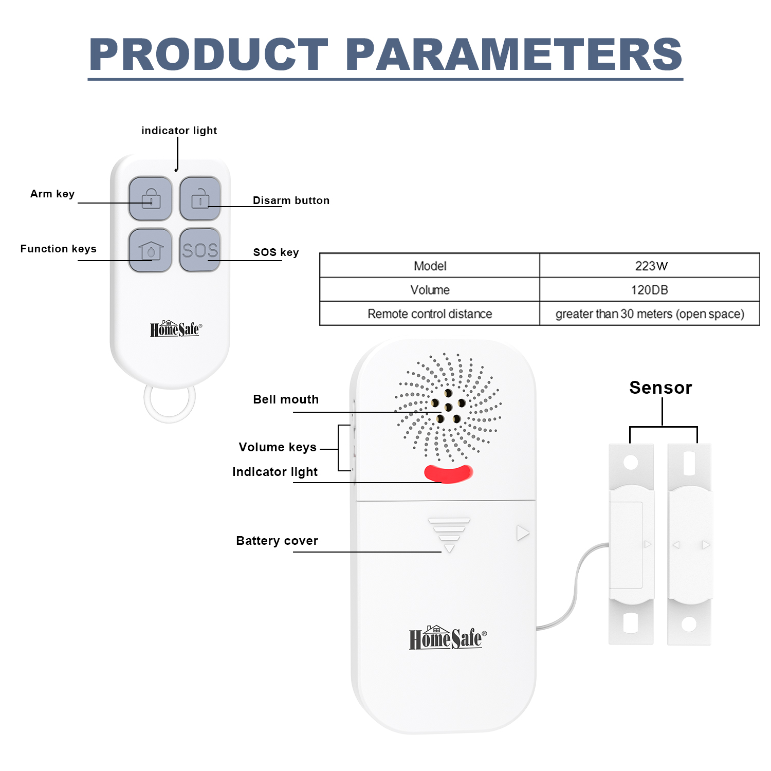 | Door open reminder, will immediately sound and light alarm once Door /Window be opened, Door /Window closed will stop alarm. | ||||