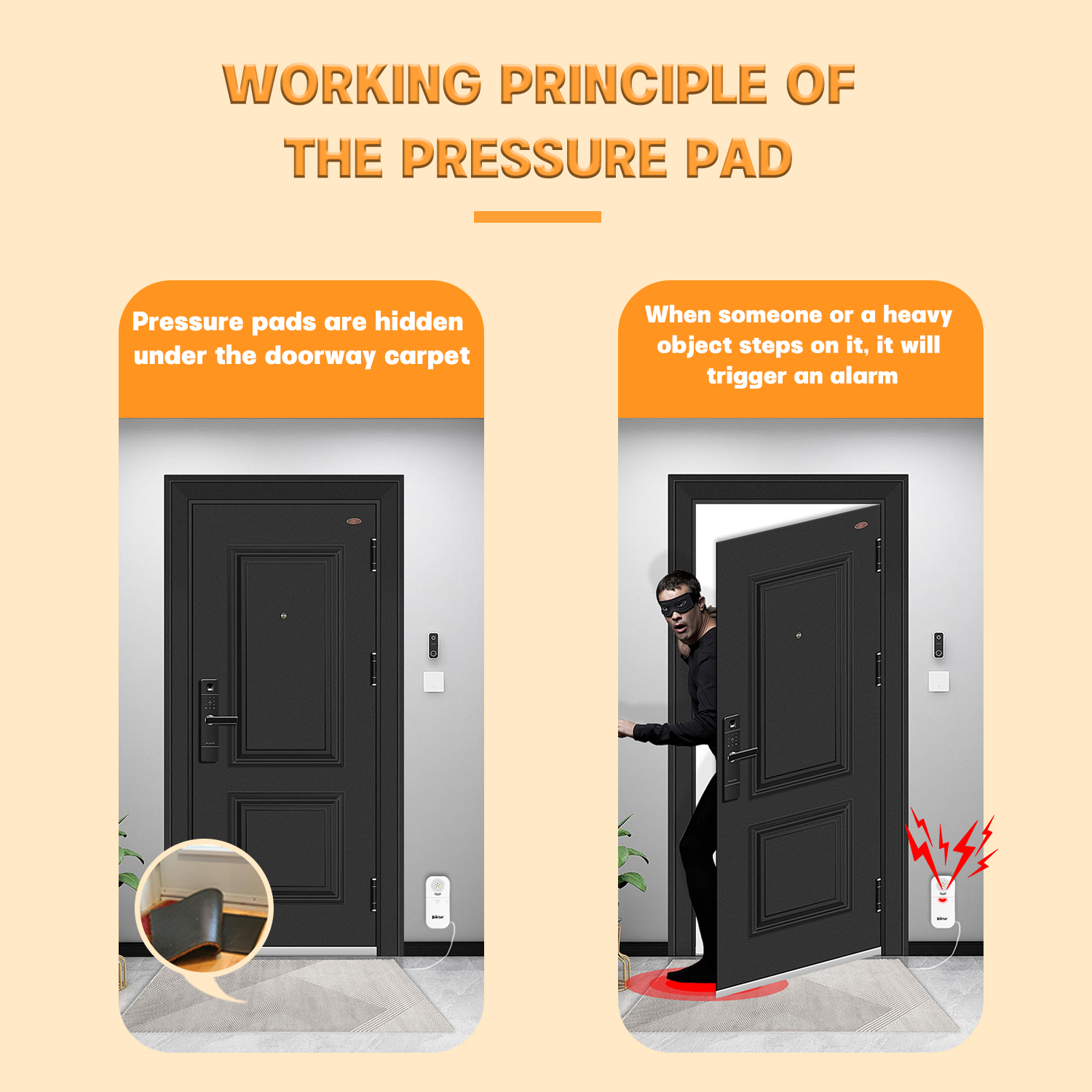 | ●Independent pressure pad sensing sound and light alarm, volume up to 120dB. | ||||||||||||||