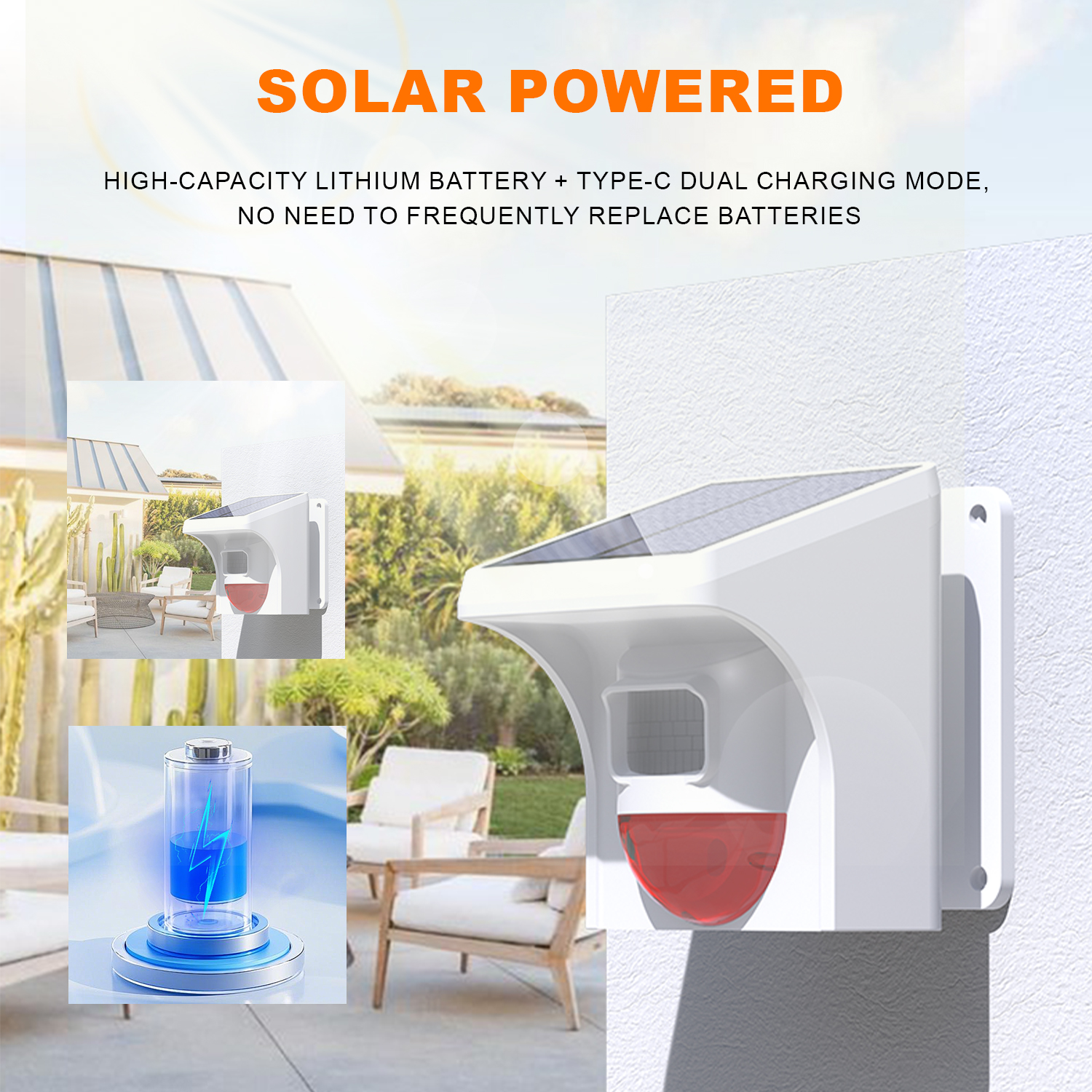 • Detector Alarm: Solar charging & Type-C DC charging